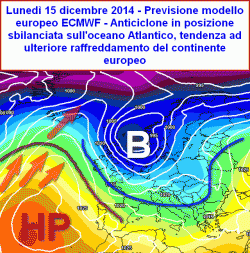Una relativa fase di tregua viene poi evidenziata dal centro di calcolo europeo tra mercoledì 10 e venerdì 12 dicembre, momento nel quale la blanda interferenza anticiclonica in arrivo dall’Europa occidentale, determinerebbe una temporanea ristabilizzazione delle condizioni atmosferiche sull’Italia, associate ad un addolcimento delle temperature.