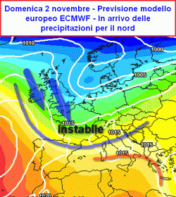Il momento di apice dell’anticiclone sul suolo italiano avverrebbe nella giornata di venerdì 31 ottobre, mentre l’esordio di novembre andrebbe proponendo sull’Italia l’avvicinamento di una depressione dai settori occidentali europei. Una depressione ricoma d’aria polare-marittima che andrebbe avvicinandosi al Mediterraneo, determinando una nuova fase di tempo instabile. In questo frangente l’instabilità e le precipitazioni sarebbero appannaggio soprattutto dei settori occidentali italiani, con precipitazioni più consistenti al nord. Avremo a che fare con un coinvolgimento almeno inizialmente marginale del mezzogiorno italiano.