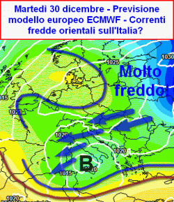 In seguito l’Italia potrebbe essere governata da una ventilazione orientale che persisterebbe almeno sino alla fine dell’anno, mantenendo sull’Italia valori termici piuttosto freddi. Situazione ancora incerta sull’esordio di gennaio.