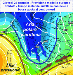 Nei prossimi giorni l'Italia verrà interessata dall'intervento di una massa d'aria più fredda dalle origini polari-marittime. Non avremo a che fare con valori di freddo eccessivi, trattasi di una normale fase di maltempo invernale questa volta con ripercussioni soprattutto sulle regioni settentrionali con NEVE a bassa quota. Sul finire del mese possibile un coinvolgimento più diretto anche delle regioni meridionali.
