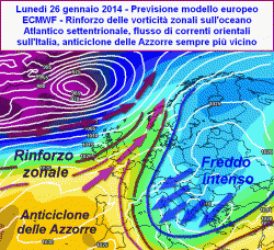 Tra penisola Scandinava e territorio russo, andrebbe consolidandosi sempre più, un’area anticiclonica di tipo termico, cioè legata al peso stesso dell’aria gelida negli strati prossimi al suolo. L’anticiclone termico potrebbe raggiungere il ragguardevole valore barico al suolo di 1050mb, frenando l’avanzata delle correnti occidentali legate ad un possibile rinforzo della semipermanente d’Islanda prevista entro la fine di gennaio. (previsione da confermare)