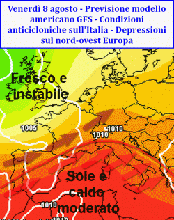 Appena al di la dell’arco alpino, le correnti fresche ed instabili di origine atlantica scorreranno vivaci, trasportando alcuni fronti atmosferici che prolungheranno oltremodo la fase di instabilità dei settori occidentali e centrali europei. Ad un passo dall’Italia, ma temporaneamente impossibilitate a far breccia sul Mediterraneo, queste masse d’aria apportatrici di instabilità troveranno la strada sbarrata verso l’Italia, limitandosi a lambire appena i settori nord-occidentali e le aree alpine. Stando alle previsioni odierne, solo una volta superata la prima metà d’agosto qualcosa potrebbe nuovamente cambiare.
