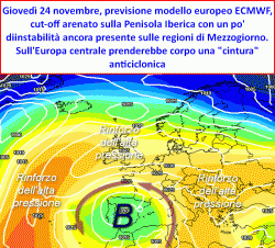 CONFERMATA l’evoluzione della nostra depressione ad un vero e proprio "cut-off", cioè un minimo ciclonico non più alimentato da aria fredda. Tale depressione potrebbe collocarsi sull’Iberia.