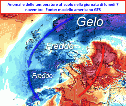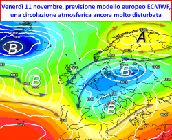 una circolazione atmosferica FORTEMENTE DISTURBATA per tutta la prima metà di novembre; nessun vero ricompattamento del Vortice Polare ma ancora la persistenza di una forte attività delle onde anticicloniche sull’oceano Atlantico e sui settori settentrionali d’Europa; un forte raffreddamento delle temperature si farebbe sentire sulla Russia, la Penisola Scandinava ed una discreta fetta della Mitteleurope. Coinvolto marginalmente anche il nostro Paese, con un ribasso delle temperature sensibile soprattutto al nord.