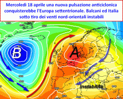 Partendo dalla sede Iberica, l’alta pressione potrebbe allungare un "braccio" verso l’Europa settentrionale, costituendo un vero e proprio ponte che veicolerebbe correnti instabili nord-orientali dapprima sui Balcani, poi anche sul nostro Paese. Tutto ciò dovrebbe verificarsi sul finire della seconda decade di aprile e porterebbe una condizione marginale di instabilità nella quale mancherebbe l’azione di sistemi nuvolosi organizzati mentre prevarrebbero i rovesci temporaleschi ad evoluzione tipicamente diurna, nelle zone interne e montuose soprattutto dell’Appennino.