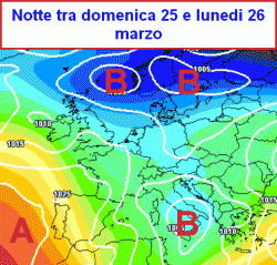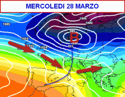 La medesima situazione si manterrà inalterata anche durante il week-end pasquale, ma con tendenza della depressione ad avanzare verso levante.