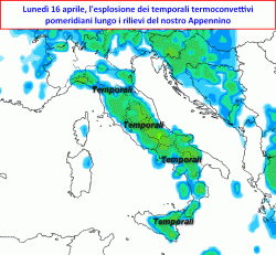 In buona sostanza cumuli e cumulonembi che durante le ore pomeridiane affolleranno i rilievi dell’Appennino, presentandosi più intensi ed organizzati sulle regioni centrali e meridionali.