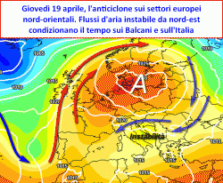 Cambia la settimana e cambiano completamente le prospettive del tempo sul nostro Paese, anche se dovremo ancora fare i conti con l’instabilità. Cambierà però l’origine delle masse d’aria che affluiranno sul nostro Paese che non saranno più legate all’azione perturbata atlantica bensì saranno legate ai flussi di aria relativamente fresca ed instabile nord-orientale che faticosamente si faranno strada lungo il bordo orientale di un potente anticiclone sull’Europa centro-settentrionale.