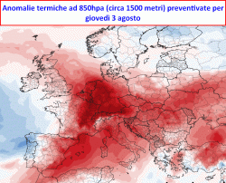 Mercoledì 2 e giovedì 3 agosto l’isoterma +25°C riuscirà ad espandersi sino alle regioni del centro Italia; se le cose stessero così, al suolo i valori potrebbero raggiungere la soglia dei +40°C. Il caldo risulterebbe molto intenso anche al nord, un