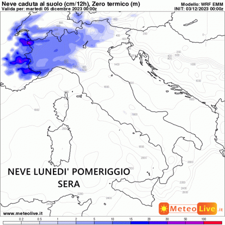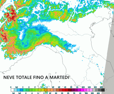 Ecco di seguito le precipitazioni nevose totali previste durante tutto il peggioramento. Nevicate più consistenti previste solo su colline e monti della Liguria, specie sul genovese oltre i 400-500 metri. Oltre 10 centimetri di neve anche sulle Alpi centrali oltre i 1.000m. In pianura si ipotizzano locali spolverate o al più qualche centimetro bagnato solo su basso Piemonte e Oltrepo Pavese.