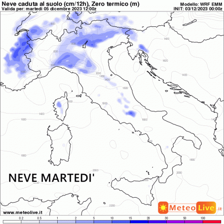 Tra martedì notte e la mattina il fronte transiterà più a est, dando vita a deboli nevicate su Emilia occidentale a tratti fino in pianura. Neve in collina su Trentino e Veneto. Anche in questo caso avremo leggere spolverate sparse al piano. Qualche centimetro di neve in collina.