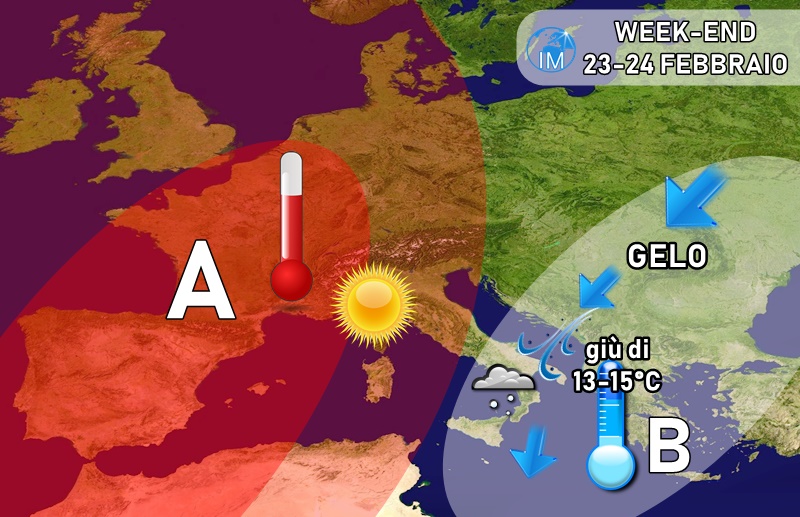 Sarà proprio questo vasto campo di alta pressione ad innescare la discesa di una nuova ondata di freddo verso l’Italia : l’anticiclone si incuneerà sin verso la Scandinavia costringendo una vasta massa gelida continentale, proveniente dalla Russia, a muoversi verso il Mediterraneo in moto retrogrado (ovvero da est verso ovest). L’aria gelida irromperà tra sabato 23 e domenica 24 sulle regioni del medio-basso Adriatico e del sud causando un calo delle temperature anche di oltre 12/13°C, in grado di portare la colonnina di mercurio tra 0 e 4°C un po’ ovunque.