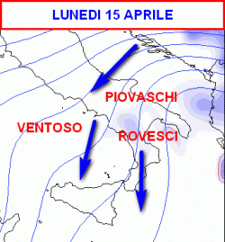 A farne maggiormente le spese saranno le regioni adriatiche e meridionali. La cartina in questione ci mostra la situazione attesa in Italia nelle ore centrali della giornata di lunedì 15 aprile.