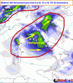 Mentre le pianure del nord-ovest, poste al riparo dall’arco delle Alpi, vedrà fenomeni piuttosto sbrigativi, se non del tutto assenti, il nord-est e al centro-sud finiranno tra pomeriggio e sera sotto le unghie della stessa perturbazione, la quale apporterà rovesci e temporali, in particolare su Toscana, Umbria, Lazio e Campania.