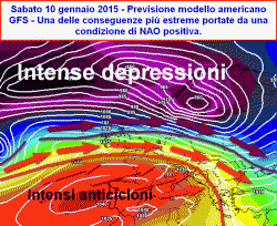 La situazione sopra descritta viene comunemente associata a condizioni di "North Atlantic Oscillation positiva" (NAO positiva), trattasi di una condizione sinottica su vasta scala che comprende giusto appunto la presenza di profonde depressioni sull’oceano Atlantico settentrionale, contrapposte ad altrettanto intensi anticicloni alle medie latitudini dell’oceano. Questa condizione va a costituire uno dei pattern meno favorevoli all’imposizione di stagioni invernali europee improntate al freddo.