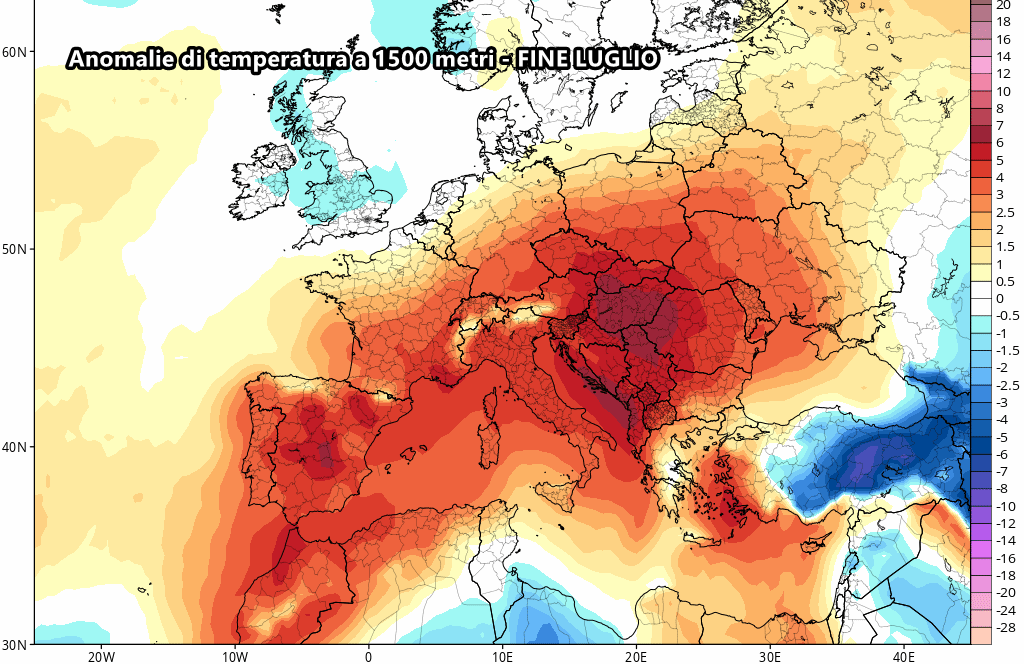 Tuttavia, come già specificato nei precedenti editoriali, si tratterà solo di una breve tregua dal caldo intenso che pare proprio ritornerà a grandi falcate già in questo finale di luglio. Eccezion fatta per qualche temporale che potrebbe manifestarsi al Nord negli ultimi giorni del mese, avremo a che fare con il solito ingombrante anticiclone nordafricano pronto ad avvolgere tutto il Mediterraneo e l’Europa centro-orientale, addirittura per quasi tutta la prima decade di agosto.