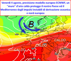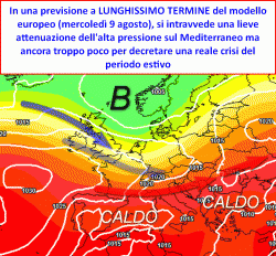 Sul fronte del caldo le notizie non sono troppo positive; sebbene da sabato 5 agosto in avanti venga evidenziato un declino graduale dell’alta pressione nell’ambito del Mediterraneo, questo declino sarà comunque un processo estremamente lento ed i valori termici alla quota di 850hpa (circa 1500 metri) continueranno ad essere molto elevati almeno sin verso il termine della prima decade di agosto, con picchi frequenti sino a +25°C. Superato tale periodo, la storia rimane ancora tutta da scrivere ma appare probabile un rientro almeno parziale dei valori di caldo.