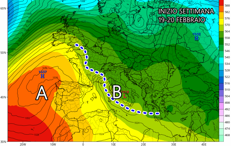 L’anticiclone sub-tropicale, responsabile di giornate fin troppo miti per l’ennesima volta in questo anomalo inverno, comincerà finalmente a vacillare con l’arrivo della nuova settimana. Si prospetta un peggioramento del tempo già tra lunedì e martedì, seppur non ovunque. Ricordiamo, infatti, che il maltempo entrerà nel vivo solo dopo il 23 febbraio, grazie all’arrivo di vaste masse fredde dal nord Atlantico, che affronteremo nei prossimi editoriali.