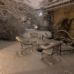 Una fantastica nevicata notturna nella città di Oslo. Immagini che fanno sognare.