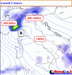 Martedì l’approfondimento di un minimo di pressione sui nostri bacini di ponente darà modo alla perturbazione di ripiegarsi su sè stessa arcuandosi con una spirale di fenomeni che abbraccerà Piemonte, bassa Lombardia, Liguria, Emilia, Romagna, centro, Campania e, dalla sera, anche la Sardegna.