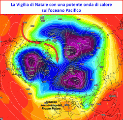 Nel nostro caso, appena superate le feste di Natale, la compressione esercitata dall’onda anticiclonica pacifica nei confronti del nostro Vortice Polare, schiaccerà le vorticità canadesi sull’oceano Atlantico, spingendo il Fronte Polare ad un vistoso ribasso di latitudine, sino a coinvolgere l’Europa meridionale ed il Mediterraneo, dando luogo a scenari di tempo perturbato.