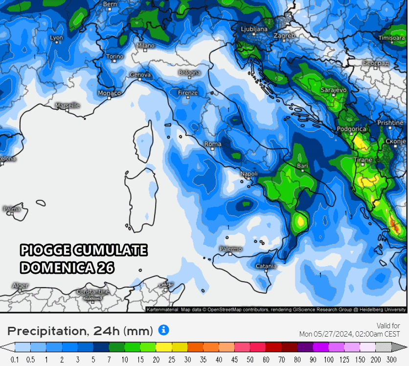 La giornata di domenica vedrà il culmine del maltempo sul Sud Italia, mentre sul resto della penisola avremo una graduale attenuazione dei fenomeni, sebbene non mancheranno delle piogge sparse e qualche residuo temporale pomeridiano.