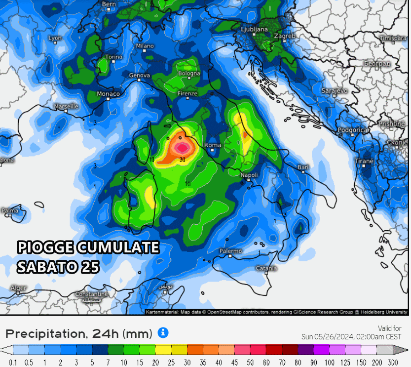 Nella giornata di sabato, il cuore della perturbazione attraverserà tutto il Centro Italia dove porterà tante nubi, cieli grigi, temporali, venti forti e anche rischio di grandinate e locali nubifragi. Nel frattempo, avremo ancora dei temporali residui al nord, soprattutto sul nord-est, mentre il peggioramento pian piano avanzerà verso sud.