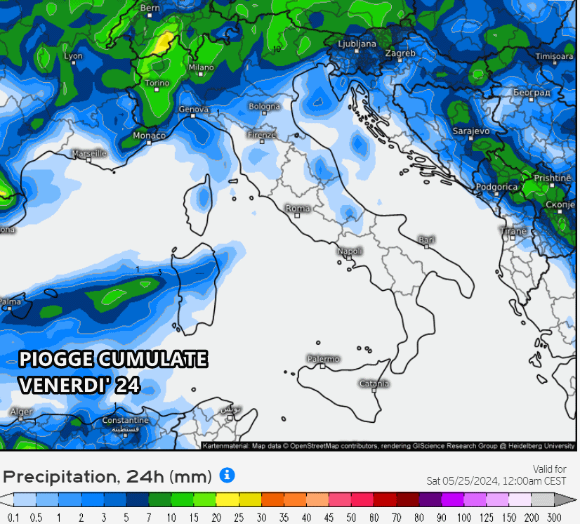 Il fronte temporalesco attraverserà gran parte del Nord Italia tra venerdì e le prime ore di sabato, garantendo altre precipitazioni abbastanza corpose con accumuli localmente superiori ai 50 mm, soprattutto in presenza di forti temporali.