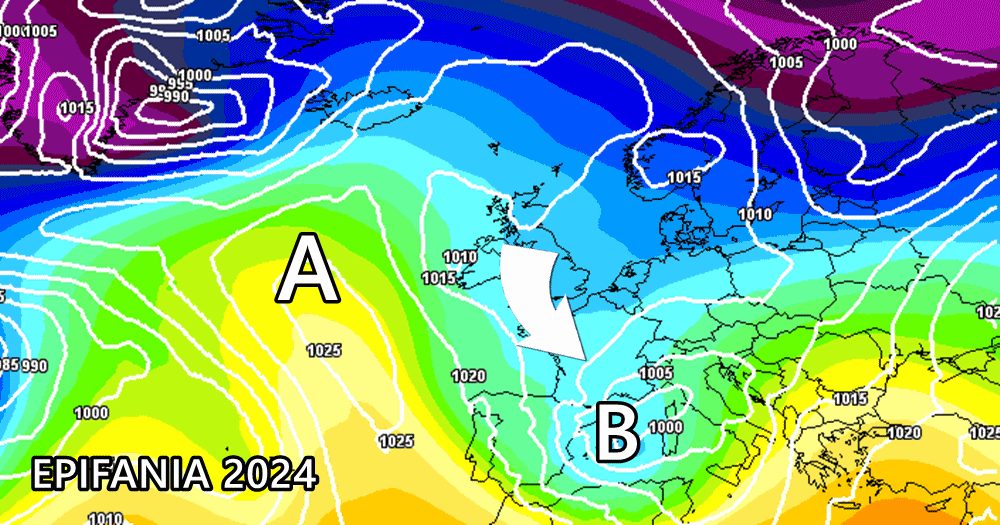 Nel post-Epifania si intravedono movimenti ancor più interessanti in ottica invernale. Come si evince dal modello europeo ECMWF aumentano sempre più le possibilità di un anticiclone di blocco nel nord Atlantico, in chiaro regime NAO negativa, che favorirebbe vasti flussi freddi artici o artico-continentali verso l’Europa ed anche il Mediterraneo.