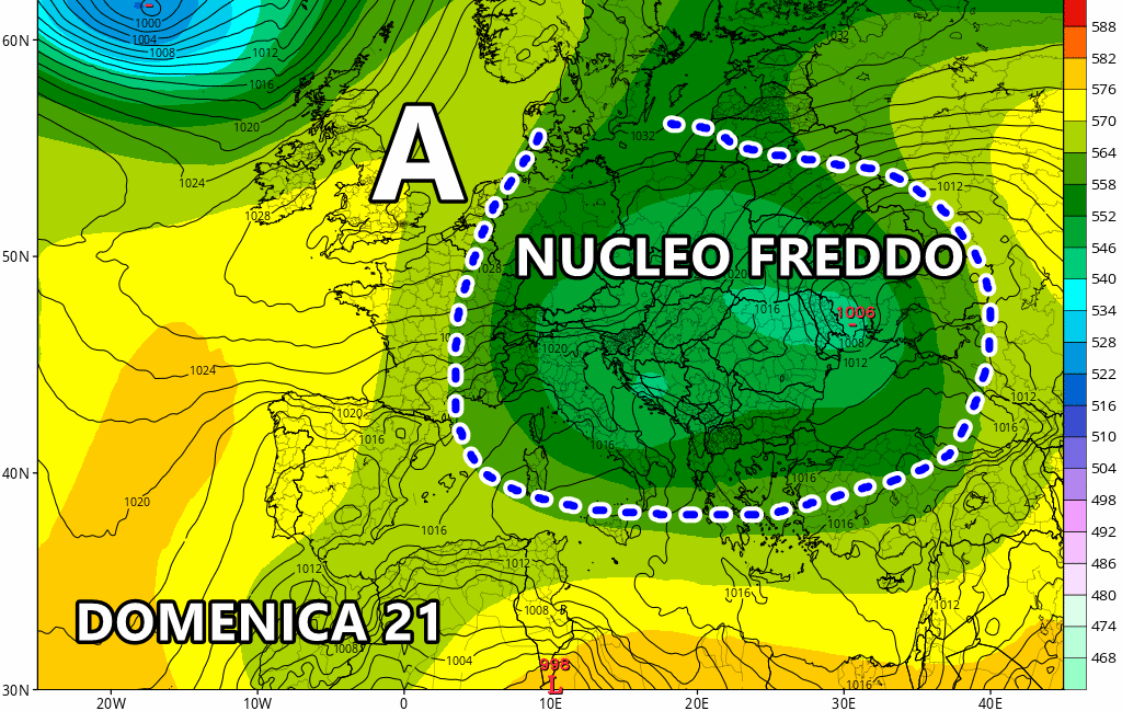 Quest’area molto calda ha letteralmente le ore contate e già dalla sera di questo martedì comincerà a indietreggiare, a partire dal Nord Italia dove subentrerà un’area molto più fredda proveniente dal Nord Europa. Queste fredde correnti settentrionali daranno luogo ad acquazzoni e temporali sul nord-est, dove non escludiamo anche l’arrivo di locali forti grandinate e nubifragi, oltre che intense raffiche di vento. Contemporaneamente la colonnina di mercurio comincerà a precipitare fino a portarsi al di sotto delle medie del periodo.