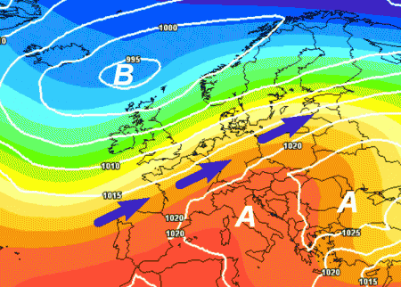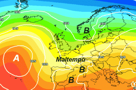 Notate il cambiamento di configurazione: alta pressione in Atlantico e depressioni con maltempo e clima autunnale sull’Italia e gran parte del nostro Continente. L’alta pressione africana sarà costretta a ritirarsi verso i propri territori di origine, liberando il Mediterraneo dalla sua oppressione.