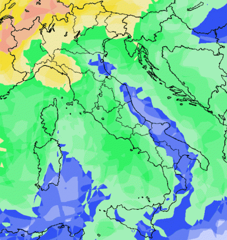 Probabilità di pioggia in aumento su quasi tutta l’Italia, che risulterà essere elevata su alcune aree dell’Italia settentrionale.