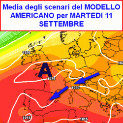 Già osservando la mappa valida per martedi 11 settembre (prima mappa) appare evidente l’aumento della pressione sull’Europa occidentale ma la nostra Penisola resterebbe sotto un flusso fresco da nord-est con episodi instabili nelle zone interne del centro, in Adriatico e al meridione. Al nord e sul Tirreno bel tempo e temperature gradevoli.