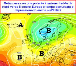 Se con un balzo virtuale ci portassimo verso la metà del mese di settembre (seconda mappa) l’emissione di controllo del modello americano andrebbe a suggerire una clamorosa irruzione d’aria fredda sul centro Europa e riflessi perturbati anche sul nostro Paese con una depressione centrata sul nord Italia.