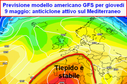 Sintesi previsionale da mercoledì 8 maggio a giovedì 16:
