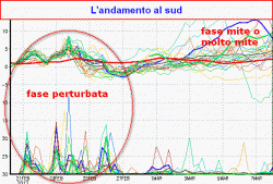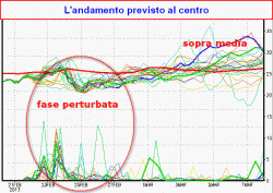 Gli unici disturbi, se così si possono definire, giungeranno da ovest, cioè dall’Atlantico, dove andrà scavandosi una profonda depressione che potrebbe spingere di tanto in tanto qualche corpo nuvoloso a sfiorare il nostro settentrione, provocando magari anche qualche momento piovoso, ma il tutto avverrà in un contesto davvero mite, così come ci indicano tutte le mappe "spaghetti" che oggi postiamo per l’Italia intera e che fotografano nella parte alta il campo termico, sotto quello precipitativo.