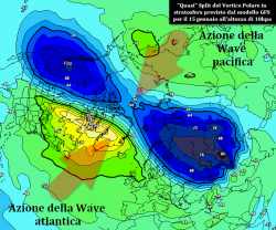 Questa evoluzione sarebbe agevolata da una intrusione di aria calda in sede polare che prenderebbe origine dalle vorticità legate ad un lobo canadese mai sopito. Una parte del gelo presente alle alte latitudini sul profondo continente Euroasiatico, verrebbe quindi "risucchiato" con azione retrograda verso la Russia europea, andando a costituire un robusto anticiclone termico. Tale dinamica sarebbe comunque favorita da alcune importanti azioni di disturbo che andrebbero palesandosi anche in stratosfera, condizionando la circolazione dell’intera colonna d’aria.