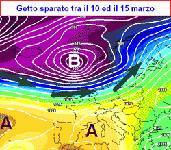 Dopo la fase moderatamente perturbata che ci attende tra il 6 e il 9 marzo infatti, il getto tornerà a correre forte, stimolato da un nuovo compattamento del vortice polare. Sarà probabilmente anche l’ultimo vero momento di gloria dell’alta pressione, che stirata verso est dalla forza della corrente, regalerà al nostro Paese una nuova fase mite e stabile tra il 10 ed il 15, ma subito dopo, o magari anche un po’ prima, interverranno fatti nuovi, diciamo tra il 15 ed il 20.