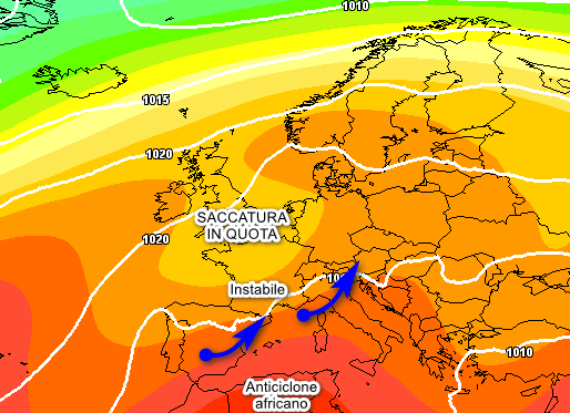 Notiamo come l’alta pressione africana verrà progressivamente disturbata da una saccatura in quota che si disporrà sull’Europa centro-occidentale. Il tempo al nord e su parte del centro inizierà a cambiare a suon di temporali maggiormente diffusi associati ad un graduale calo termico. Il meridione e le Isole resteranno invece sotto le grinfie dell’anticiclone, che tuttavia dovrebbe concedere qualche grado in meno.