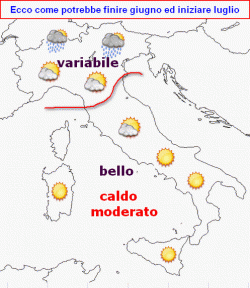 SINTESI PREVISIONALE DA MARTEDI 25 GIUGNO a MARTEDI 2 LUGLIO: