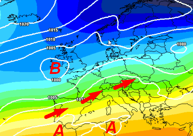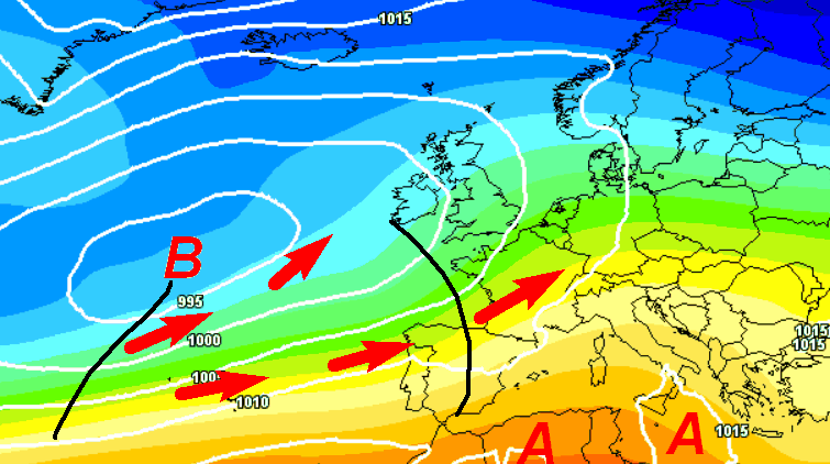 Alta pressione distesa tra il nord Africa e le basse latitudini del Mediterraneo, comprese le regioni meridionali, le Isole e parte delle regioni centrali. Il nord resterà invece sotto il tiro dell’aria umida dall’oceano e potrebbe avere annuvolamenti ed alcune precipitazioni, anche se in un contesto termico generalmente mite.