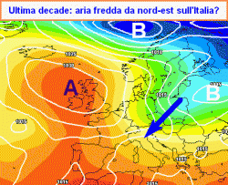 Si conferma la possibilità di uno sbilanciamento verso nord del possente anticiclone che andrà posizionandosi tra Europa centrale e mediterranea, ma solo nell'ultima decade del mese.