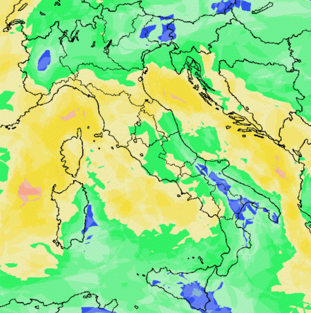 Notiamo una probabilità media o elevata di avere precipitazioni in Italia, che al nord e su parte del centro potrebbero essere di tipo nevoso anche a bassa quota.