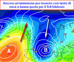 Martedì 5 febbraio e mercoledì 6 febbraio: affondo più marcato delle saccature verso ovest con possibile fase di maltempo invernale a partire dal settentrione e dalla Toscana e neve sino a quote collinari, specie da mercoledì. Ulteriore calo delle temperature, stavolta anche e soprattutto al nord-ovest.