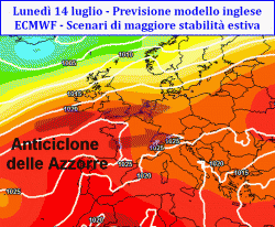 Dal canto suo il modello inglese ECMWF spezza una lancia a favore dell’anticiclone oceanico, ipotizzando tuttavia una sua distensione verso l’Europa centrale solo su distanze previsionali molto lunghe (lunedì 14 luglio). Complessivamente l’ago della bilancia propende quindi sul mantenimento di un regime d’instabilità piuttosto prolungato nel tempo. In questo panorama previsionale trova sempre meno spazio la possibilità di un ritorno in grande stile dell’Anticiclone delle Azzorre, sacrificato spesso e volentieri da continue e ripetute dinamiche d’instabilità.