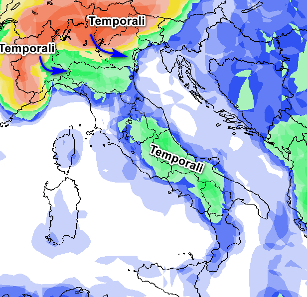 Notiamo come i temporali dai settori alpini potrebbero scendere verso le pianure del settentrione in maniera nettamente più agevole. Anche i temporali nelle aree interne dell’Italia centro-meridionale diverranno maggiormente aggressivi, con la possibilità di qualche sconfinamento verso le coste sottostanti; il tutto sarà accompagnato da un quadro termico in parziale ridimensionamento, ma ancora orientato su temperature abbastanza elevate.