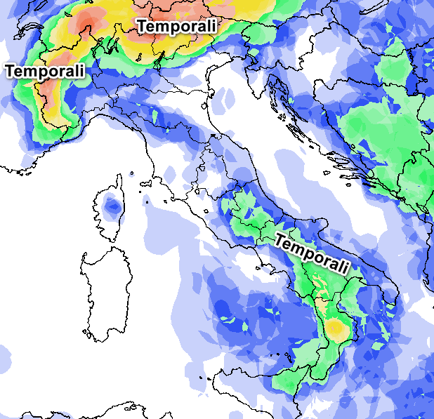 Come abbiamo già accennato, i temporali frequenteranno soprattutto le Alpi e l’Appennino centro-meridionale segnatamente nel pomeriggio, con basso rischio di sconfinamenti verso le pianure e le coste sottostanti. Su tutte le altre regioni fenomeni assenti o poco probabili.