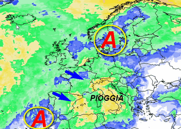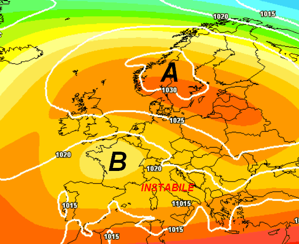 Alta pressione disposta molto a nord, a ricoprire la Scandinavia e gran parte dell’Europa settentrionale. Da noi sarà invece presente una vasta circolazione instabile che abbraccerà non solo l’Italia, ma molti Paesi dell’Europa meridionale e mediterranea.