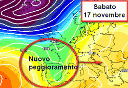 Riassumendo: venerdì 16 novembre tempo abbastanza buono e mite sull’Italia. Sabato 17 inizia un peggioramento a partire dai settori occidentali, che poi si esplicherà sull’Italia tra domenica e lunedì. Successivamente avremo una pausa soleggiata, prima di un nuovo peggioramento, sempre da ovest, atteso tra giovedi 22 e venerdì 23.