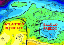 Punto terzo: le correnti da est. Sul bordo orientale della sopra citata alta pressione, potrebbe prendere piede un flusso di correnti orientali, con annesso polo freddo ben visibile dalla cartina sopra esposta.